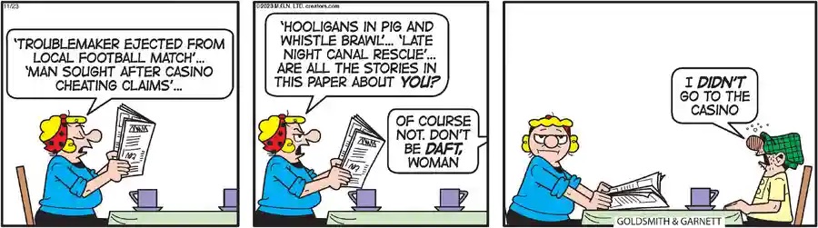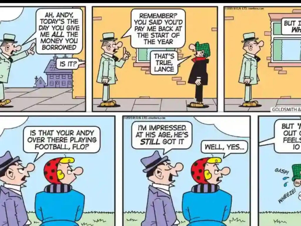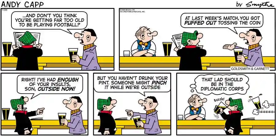 What makes Andy Capp so enduring is his ability to connect with readers through relatable humor. The comic strip is filled with situations that reflect the everyday challenges we all face, from the struggles of procrastination to the comical misunderstandings that arise in relationships. Andy’s dry wit and clever observations remind us that we’re all in this together, no matter how chaotic life can be. His tales of navigating the ups and downs of life bring comfort and laughs, serving as a gentle reminder to find joy in our struggles and to appreciate the humor that can arise from even the most mundane tasks.