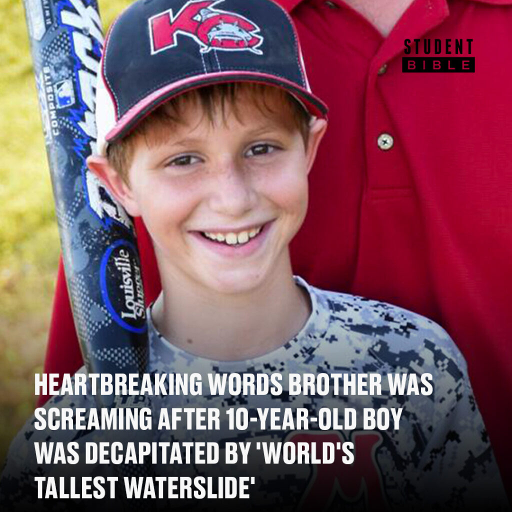 The harrowing words uttered by a grieved sibling whose 10-year-old brother was decapitated on the ‘world’s tallest waterslide’ have been revealed.