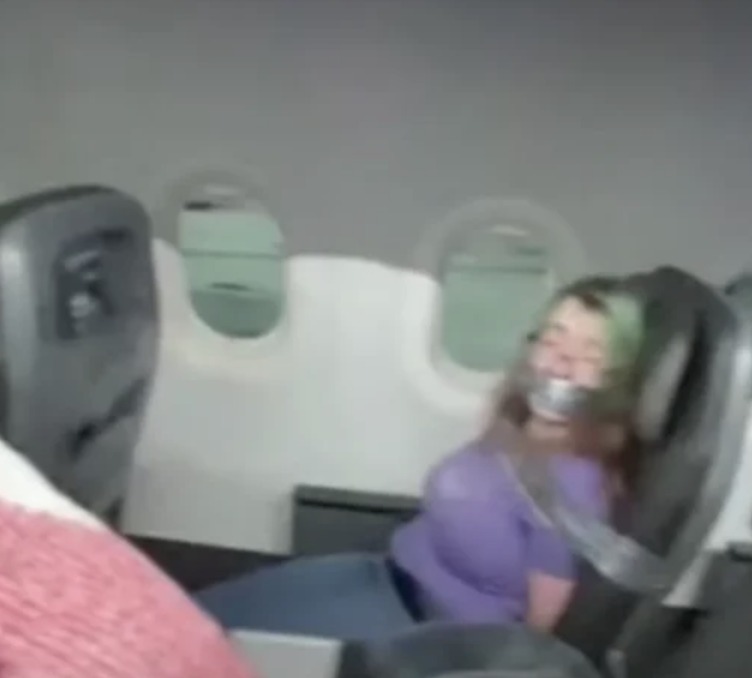 “I guess it took all five flight attendants to subdue her and like literally take her down so,” she stated. “They pretty much took her down, put her in the seat and duct taped her.”