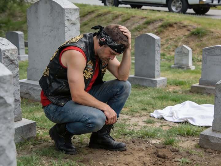 Every Saturday at exactly two in the afternoon, a biker rode into the cemetery and parked beneath the same old maple tree. For six months, I watched from my car as he walked directly to my wife Sarah’s grave, removed his helmet, and sat silently beside her headstone. His visits were precise, reverent, and unwavering.